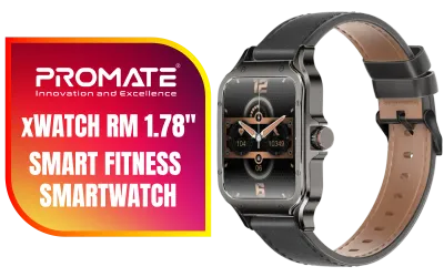 Promate xWatch RM 1.78" Fitness Tracker Smartwatch with Bluetooth Calling - Black / IP68 Water Resistance / 1.78" Curved AMOLED Display / Heart Rate/SPO2/Step/Sleep/ Women Health Tracker / 100+ Customized Watch Faces / XWATCH-RM.BLACK