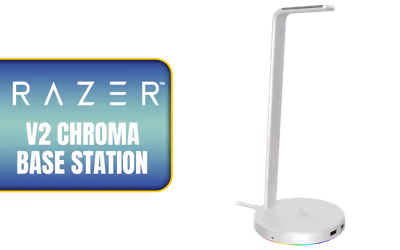 Razer Base Station V2 Chroma - Mercury / Chroma™ RGB / 1 x 3.5mm Combo Port With Built-in DAC / Anti-slip Base / Enhanced Height For Larger Headsets / Aluminum Construction / RC21-01510300-R3M1 / RC21-01510300-R3M1