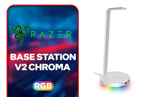 Razer Base Station V2 Chroma - Mercury / Chroma™ RGB / 1 x 3.5mm Combo Port With Built-in DAC / Anti-slip Base / Enhanced Height For Larger Headsets / Aluminum Construction / RC21-01510300-R3M1 / RC21-01510300-R3M1