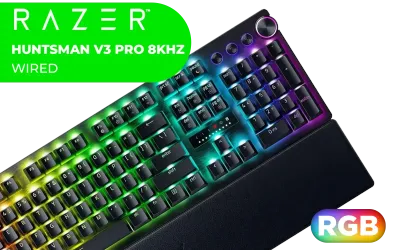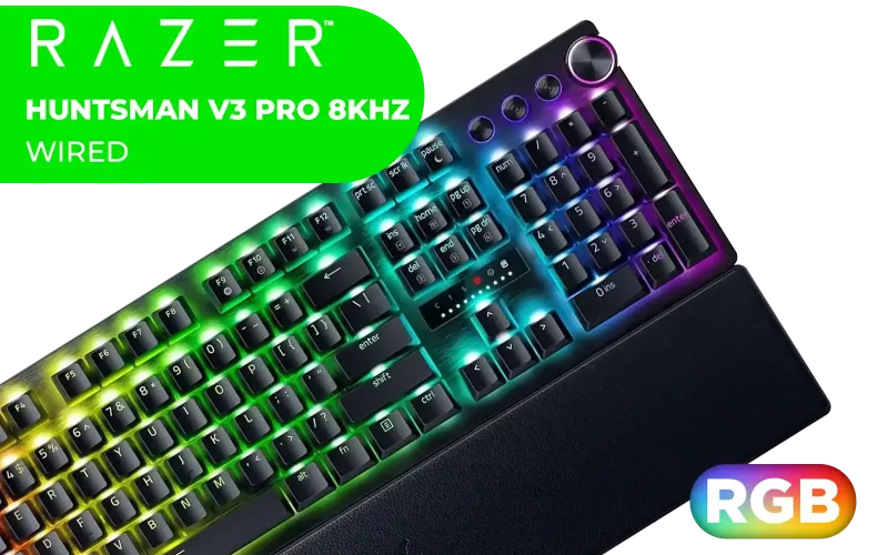 Razer Huntsman V3 Pro 8KHz Esports Gaming Keyboard - Black / Analog Optical Switches w/Rapid Trigger & Adjustable Actuation / Media Keys & Dial / Doubleshot PBT Keycaps / Aluminum Top Plate / Wrist Rest / RZ03-05530100-R3M1