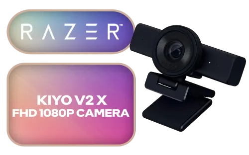 Razer Kiyo V2 X 1080p FHD Camera / Full HD 1080p @ 60FPS Video / Fast Auto-Focus For Sharp Clarity / Customisable Video Controls Via Razer Synapse / 80° Wide-Angle Lens / Built-In Stereo Omnidirectional Microphone / Adjustable L-Shaped Mount / RZ19-05380100-R3M1 / RZ19-05380100-R3M1