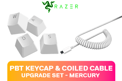 Razer PBT Keycap And Coiled Cable Upgrade Set - Mercury White / Fits all Razer Mechanical and Optical Keyboards / Shine-resistant PBT Material / Backlight Compatible / Fits all Cross-shaped / Includes Stabilizers / RC21-01490900-R3M1 / RC21-01490900-R3M1