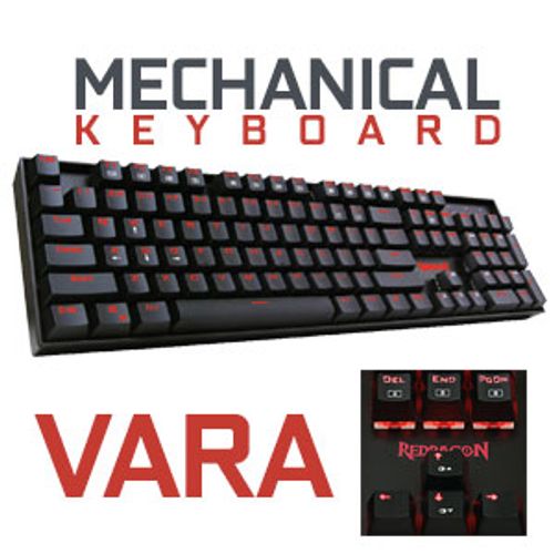 Redragon VARA K551 Mechanical Gaming Keyboard / Cherry Green equivalent / Red LED adjustable lighting / Aluminum and ABS construction / 87 standard conflict free keys / 12 multimedia keys and splash-proof design / RD-K551
