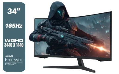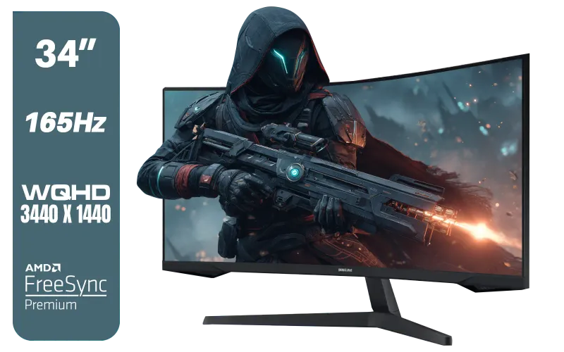 Samsung Odyssey G55T 34" Ultra WQHD (3440 x 1440) 165Hz Curved Gaming Monitor / AMD FreeSync Premium / 165Hz Refresh Rate / 1ms Response Time / 1000R Curved Display / Futuristic Design / LC34G55TWWRXEN