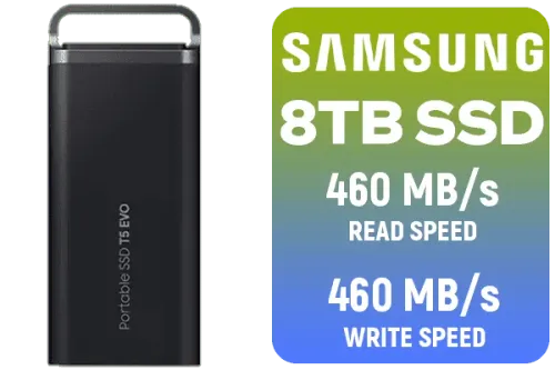 Samsung T5 EVO 8TB Portable SSD / Up to 2 meters drop resistant / Up to 460MB/s / Up to 3.8 x faster than external HDD / USB 3.2 Gen 1 (5 Gbps) / MU-PH8T0S/WW / MU-PH8T0S/WW + FREE DELIVERY !