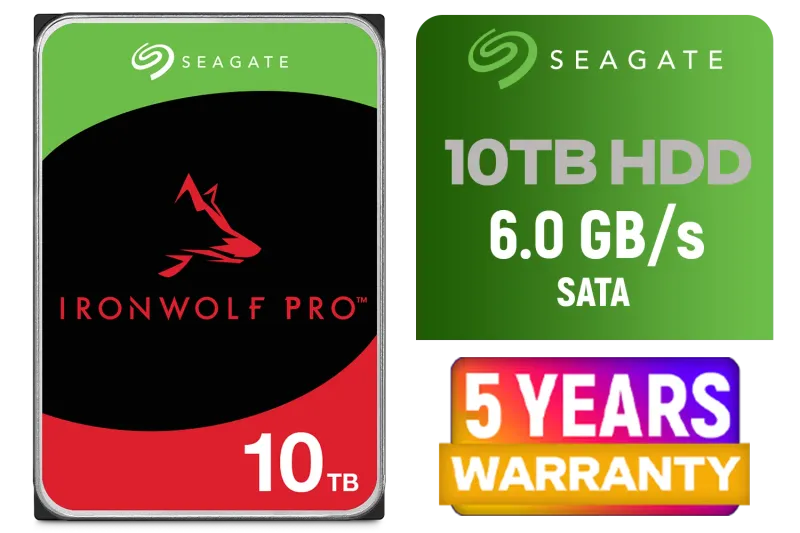 Seagate Ironwolf Pro 3.5" Internal Hard Drive - 10TB / 256MB Cache / 7200R RPM Spindle Speed / Up to 263MB/s Data Transfer / SATA 6Gb/s Interface / ST10000NT001
