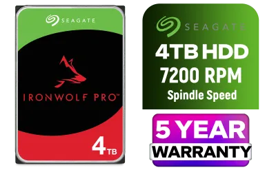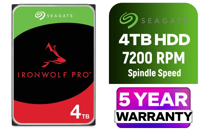 Seagate® 4TB 3.5" IronWolf Pro Internal Hard Drive / 256MB Cache / 7200 RPM Spindle Speed / Up to 250MB/s Data Transfer / ST4000NT001