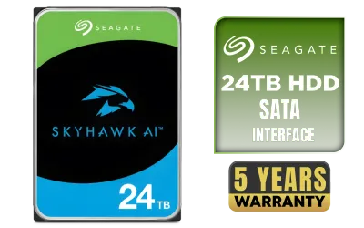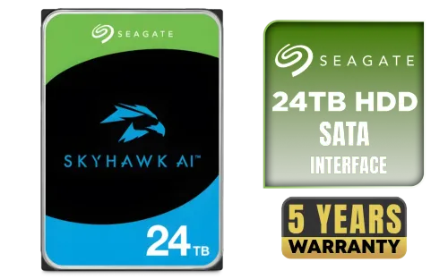 SEAGATE SkyHawk AI 24TB Surveillance Hard Drive / 3.5" SATA 6Gb/s / 7200RPM / CMR Technology / Optimized for AI NVR Systems / Supports up to 64 HD Video Streams & 32 AI Streams / ImagePerfect AI Technology / 550TB Workload Rate / 2.5M Hour MTBF / ST24000VE002 + FREE DELIVERY !