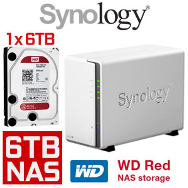 Synology DS215j 2-Bay Cloud NAS System Network Storage With 6TB (1x 6TB) WD Red NAS HDD / 1 x RJ-45 1GbE LAN / 1 x USB3.0 + 1 x USB 2.0 / MARVELL Armada 375 88F6720 Dual Core 800 MHz Processor / Synology DS215j 6TB