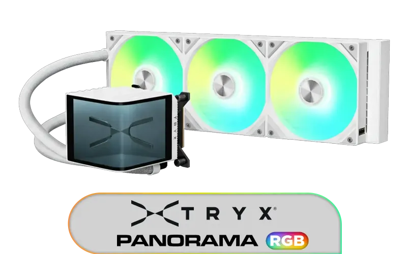 TRYX PANORAMA ARGB 360mm Liquid Cooler - White / L-Shaped AMOLED Screen / Support Latest Specifications AMD/Intel / Adjustable Mounting Bracket / High-Performance Pump / L-P360A-AS3M-G1W