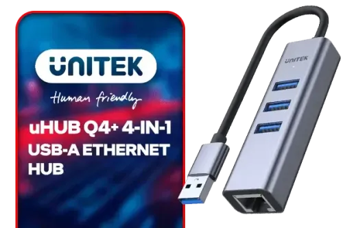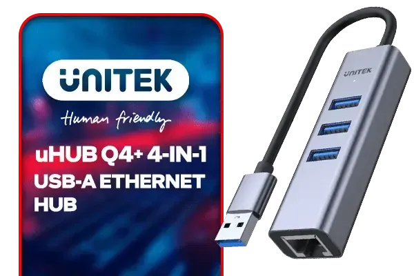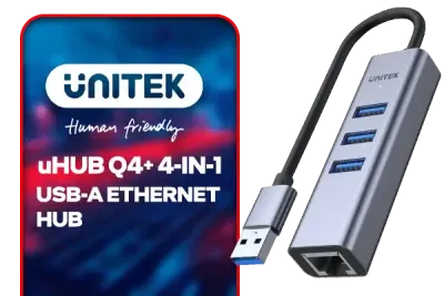 UNITEK uHUB Q4 - 4 in 1 USB A Ethernet Hub for Fast Connectivity | Evetech