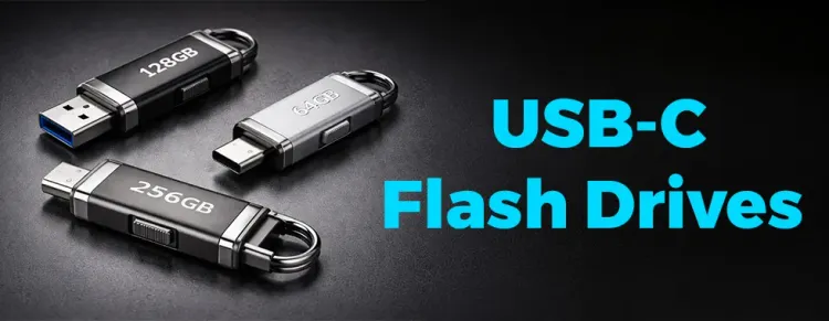 USB-C flash drives are compact, high-speed portable storage devices with a reversible USB-C connector, ideal for modern laptops, smartphones, and tablets. Great for fast file transfer, backups, and on-the-go productivity.