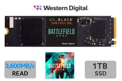 WD Black 1TB SN750 SE Battlefield 2042 Edition M.2 Gen4 PCle Internal Solid State Drive (SSD) / Sequential Read Speed Up To 3,600MB/s / Includes a Full Game PC code for Battlefield 2042 Standard Edition / WDBB9J0010BNC-WRSN / WDBB9J0010BNC-WRSN