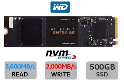 WD Black 500GB SN750 SE M.2 Gen4 PCle Internal Solid State Drive (SSD) / Sequential Read Speed Up To 3,600MB/s / Sequential Write Speed Up To 2,000MB/s / WDS500G1B0E / WDS500G1B0E + FREE DELIVERY !