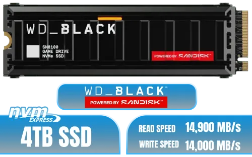 Western Digital SN8100 4TB NVMe Internal Solid State Drive with Heatsink / Read Speeds up to 14,900 MB/s / Write Speeds up to 14,000 MB/s / TCG Opal Security Encryption / nCache™ 4.0, Game Mode, and Adaptive Cooling / Includes SanDisk Dashboard & Acronis® True Image™ Software / WDS400T1XHM / WDS400T1XHM + FREE DELIVERY !
