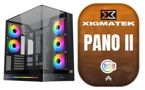 Xigmatek Pano II Mid Tower Gaming Case - Black / Supports Motherboards up to E-ATX / Single-Piece Curved Tempered Glass Chassis / Optimized Airflow Design / CPU Cooler Clearance up to 165mm / GPU Length up to 400mm / Adjustable GPU Support Bracket / 8 x Pre-Installed ARGB Fans Included / LCD Display Panel Not Included / EN48418 + FREE DELIVERY !