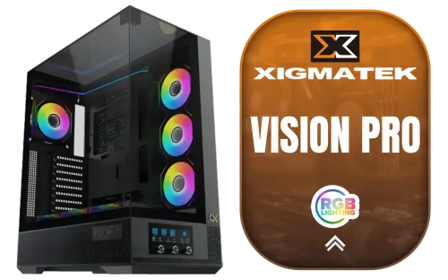 Xigmatek Vision Pro Mid Tower Gaming Case - Black / 3 Tempered Glass Panels / Smart Fan Control LCD Display for Fan & ARGB Management / ARGB & PWM Hub Integration / Supports GPU's Up to 420mm / Magnetic Bottom Dust Filter / Supports Motherboards up to E-ATX / 8 x Pre-Installed ARGB Fans Included / EN45158 / EN45158 + FREE DELIVERY !